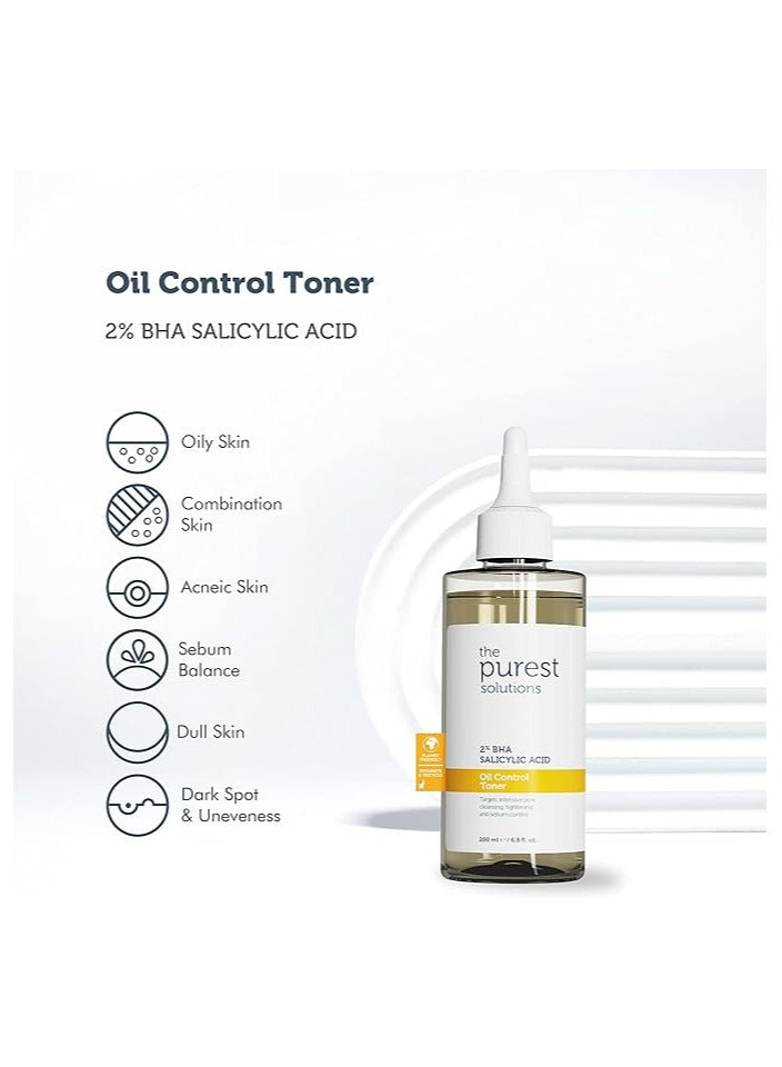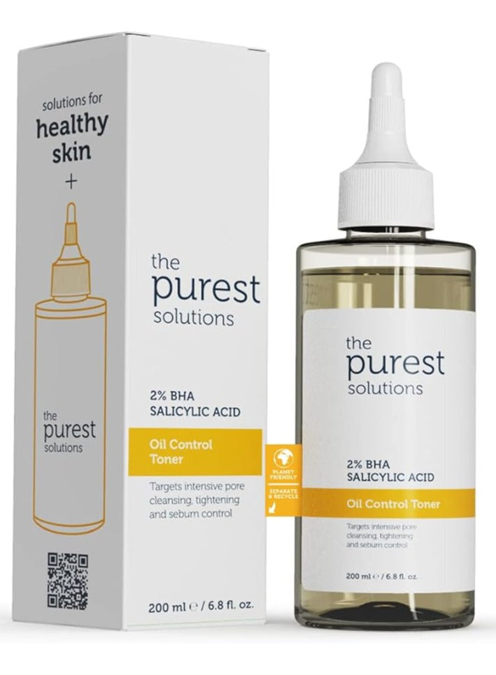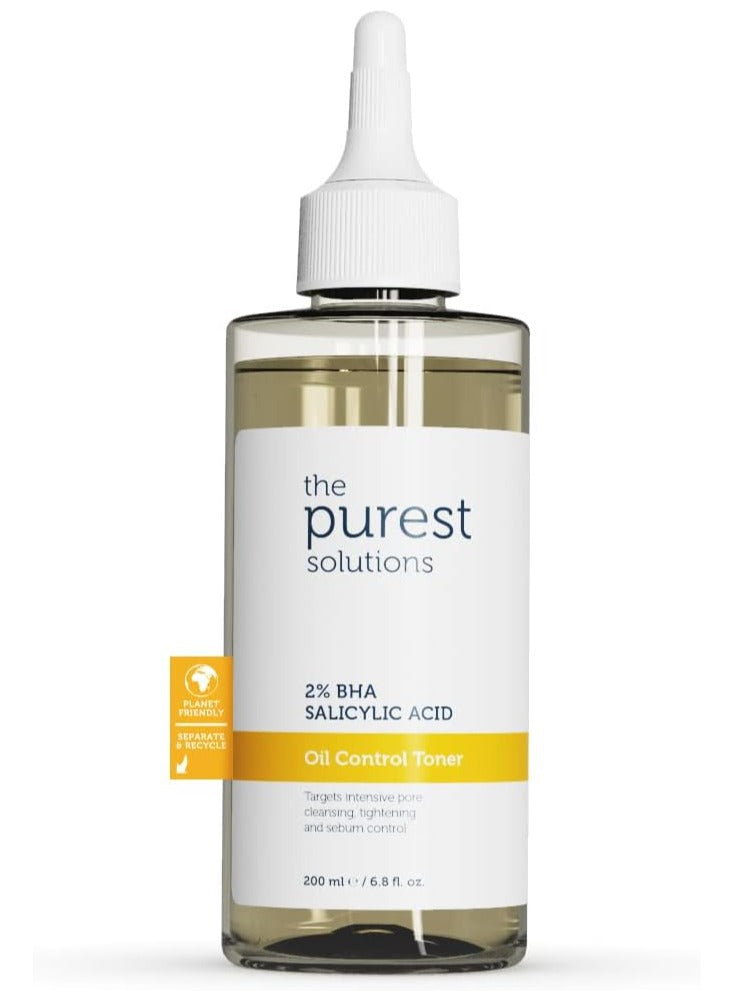 The Purest Solutions Oil Control Toner (2% BHA Salicylic Acid) - Oily, Pore Balancing Toner for Acne & Scarred Skin - Blackhead Targeted Formula - Vegan | Cruelty Free | Eco Friendly (200 ml)