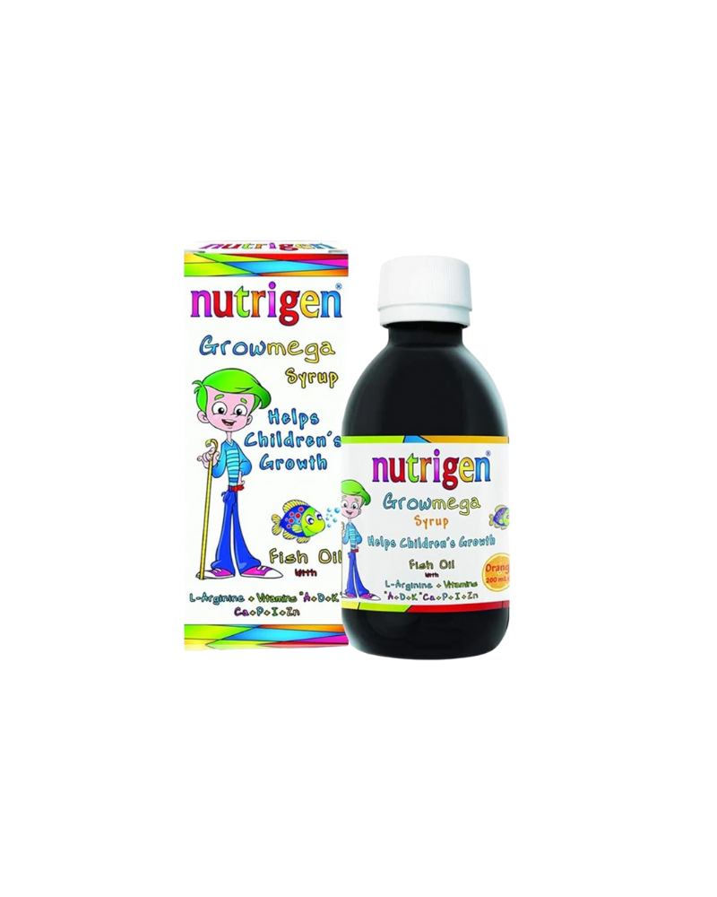 Nutrigen Growmega Syrup is fish-oil syrup enriched with vitamins and minerals to support the healthy growth and development of children. The unique composition of Nutrigen Growmega Syrup contributes to maintenance of normal development of bones, teeth and normal muscle function. When bones and all related tissues develop in accordance, children have stronger skeletal system and have longer height. Nutrigen Fish Oil Syrup is different from all known conventional fish oil syrups not only in its composition and taste but also in the fish oil content. The fish oil EPA and DHA fatty acids, zinc, L-arginine and vitamins K and D are the essential nutritional factors to promote the development of bone structure and height growth in children. The main problem with the children in taking fish oil syrup is its taste that mostly makes them to refuse to drink. Now Nutrigen Fish Oil Syrup with its starch encapsulated fish oil offers amazingly tasting good syrup in fresh orange juice.